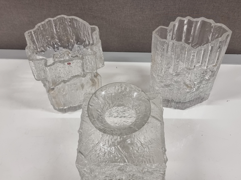 #202 - 3kpl taidelasimaljakoita, 2kpl Wirkkala, 1 Sarpaneva.
