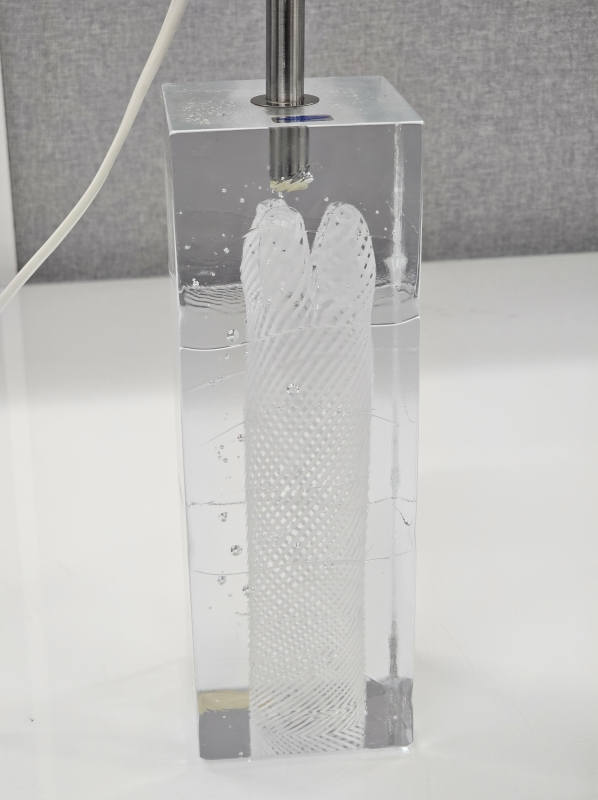 Sign. Lounais-Suomen Sähkö-Osakeyhtiö 1987. Yhdessä reunassa vika. Lasiosan k: 23cm, kokonaiskorkeus 53cm.