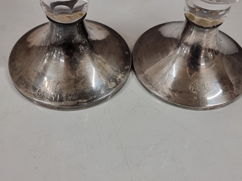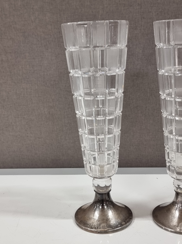 #251 2kpl Aimo Okkolin kristallimaljakoita hopeajalalla.