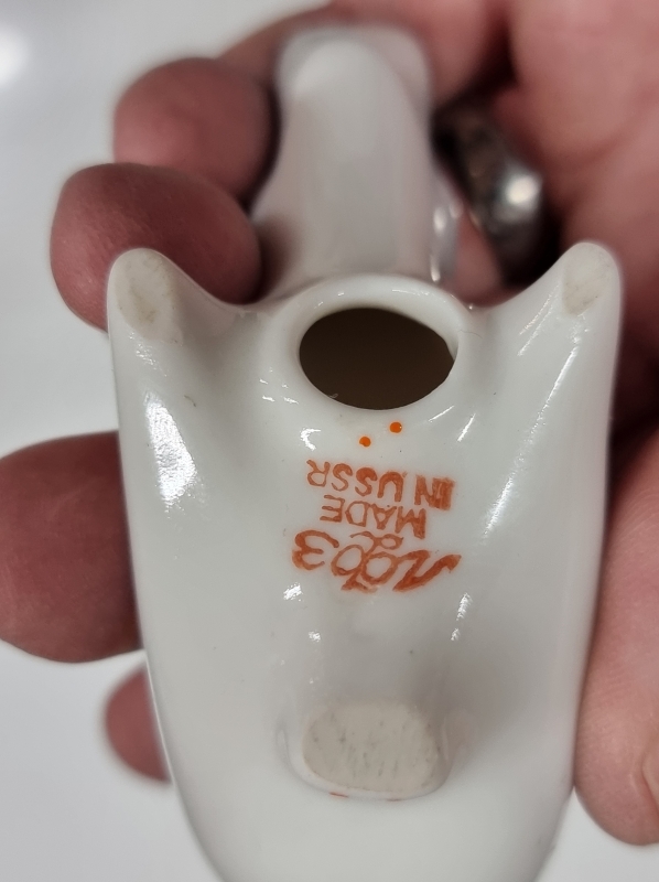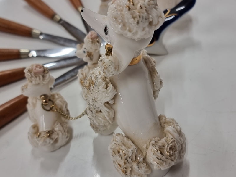 #710 2kpl koirafiguureja, Lomonosov-sirotin ja 6kpl Iisakki Järvenpää hedelmäveitsiä.