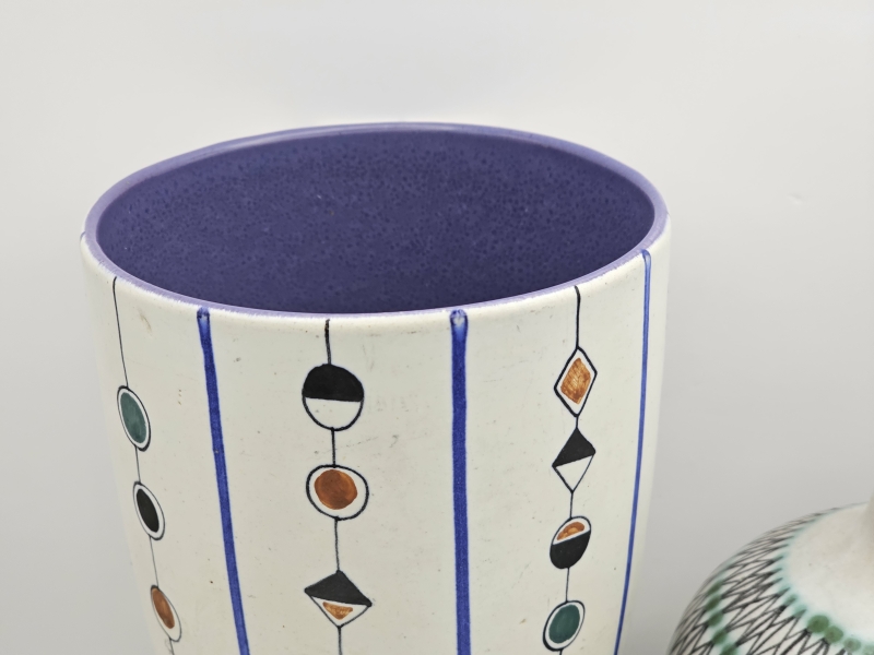 #718 2kpl Kupittaan savi esineitä: Okki Laine & Hendrik van Riemsdijk KOE-maljakko