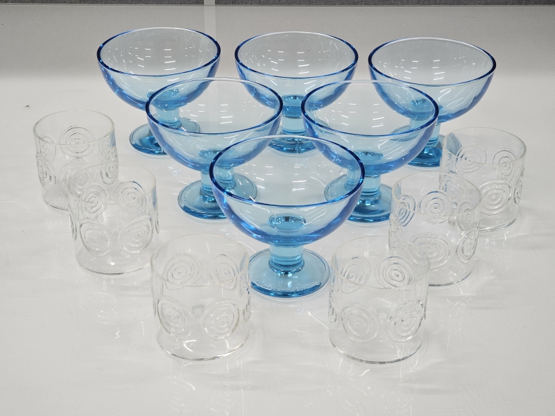 #343 6kpl Verna -jälkiruoka-astioita & 6kpl Kumela Rengas -laseja
