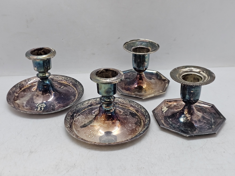 #1066 - 2+2kpl hopeisia kynttilänjalkoja