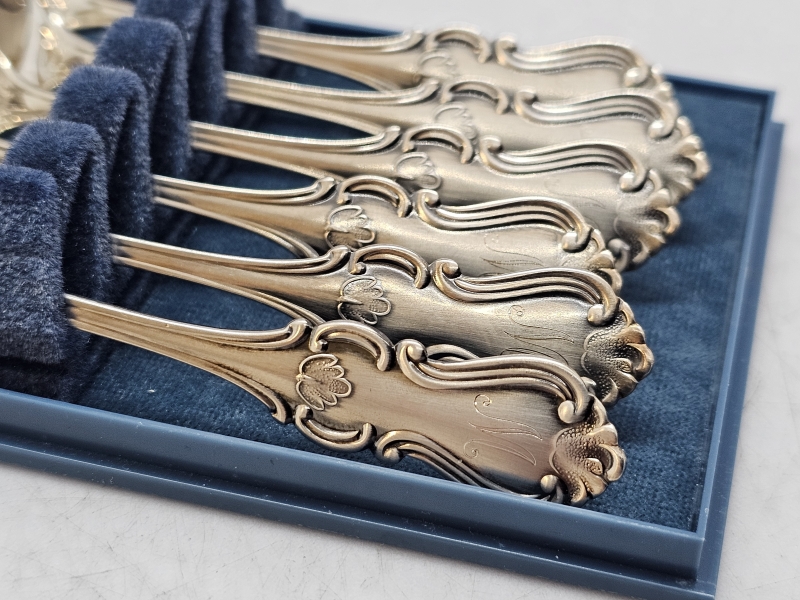 #1096 1+6kpl hopeisia Romantikka -sarjan lusikoita