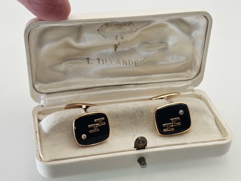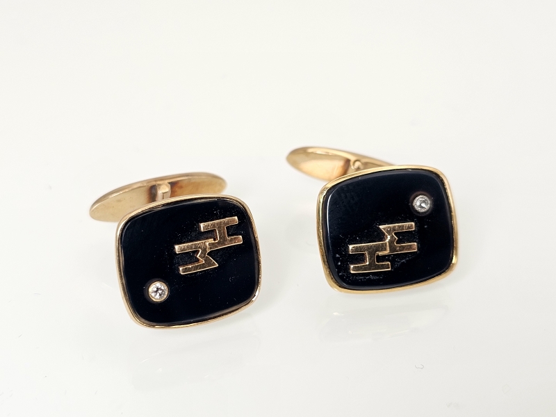 #1075 - 14k kultaiset kalvosinnapit timanteilla, 10,02g