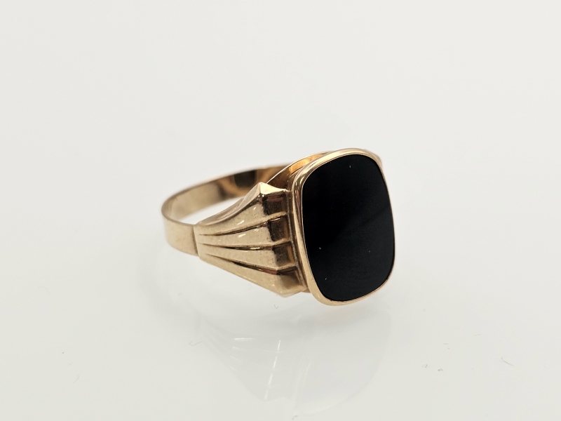 #1074 - 14k kultainen sormus mustalla kivellä, 3,95g