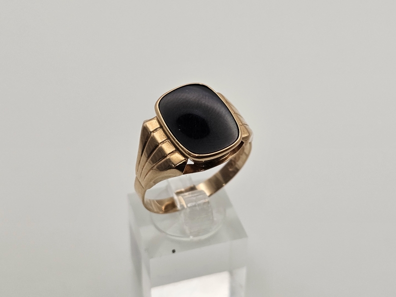 #1074 14k kultainen sormus mustalla kivellä, 3,95g