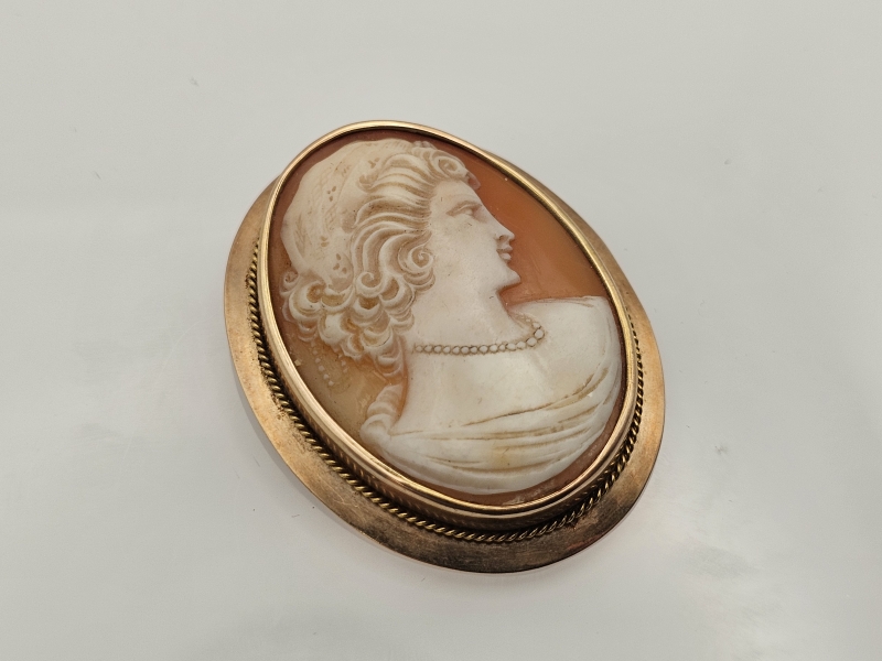 #1038 - 14k kultainen camee rintakoru, 12,06g