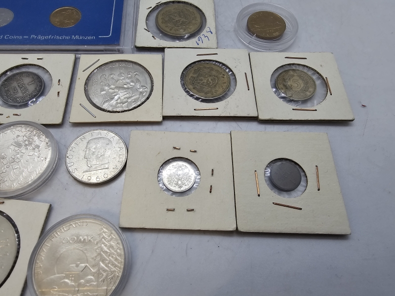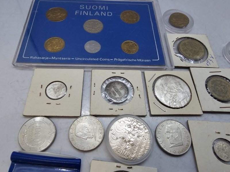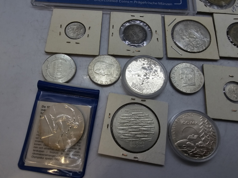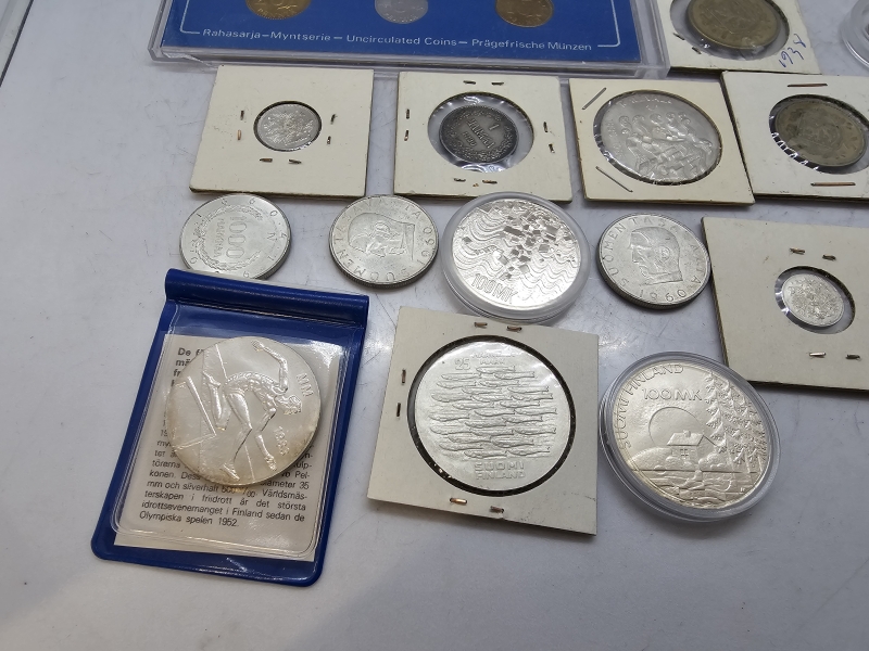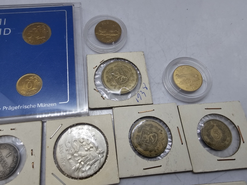 #1176 - Erä vanhoja rahoja, hopeisia juhlarahoja ym.