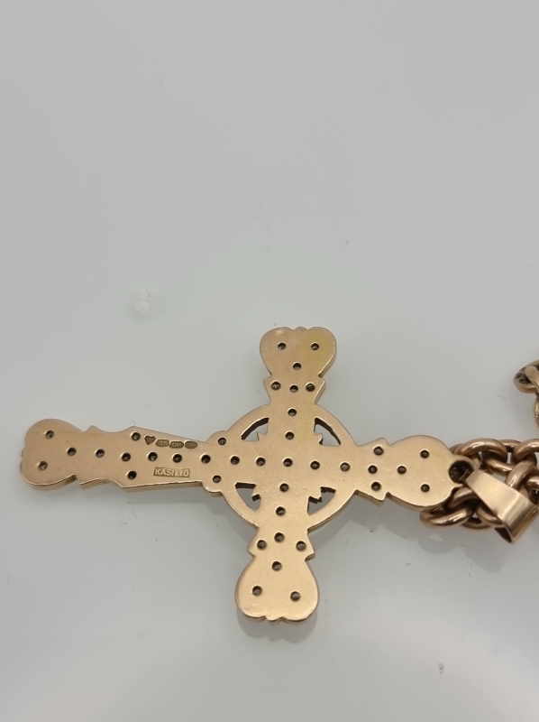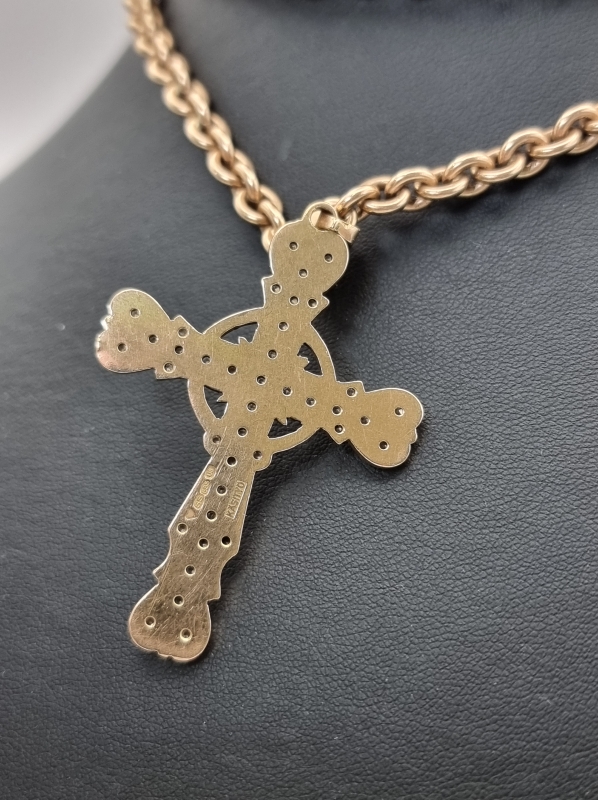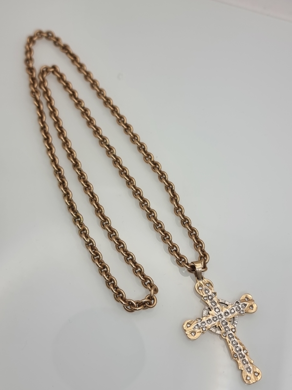 #1048 14k kultainen kaulaketju ja iso ristiriipus 39 timantilla joita yhteensä n. 0,97ct, 102,7g