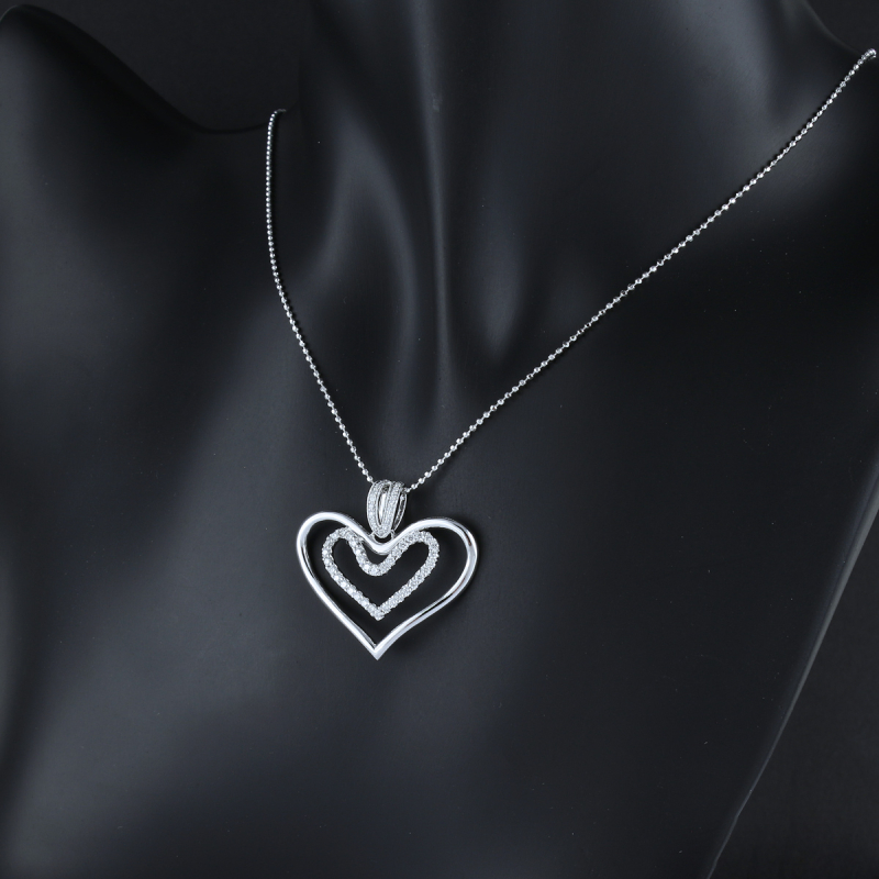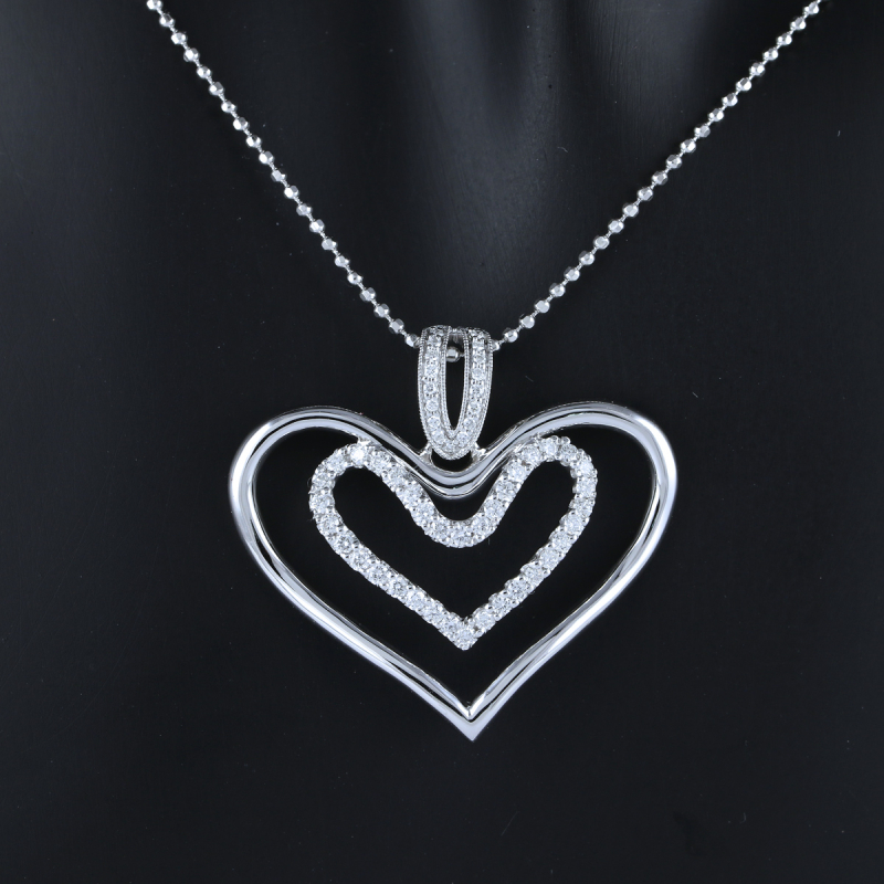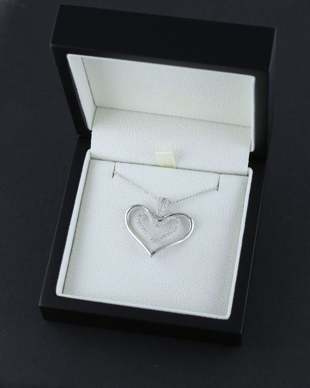 #1144 - 14k valkokultainen käyttämätön sydänriipus 53 timantilla, 6,64g