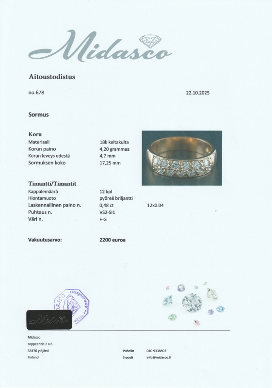 #1145 18k kultainen sormus 12 timantilla [yhteensä 0,48ct], 4,2g