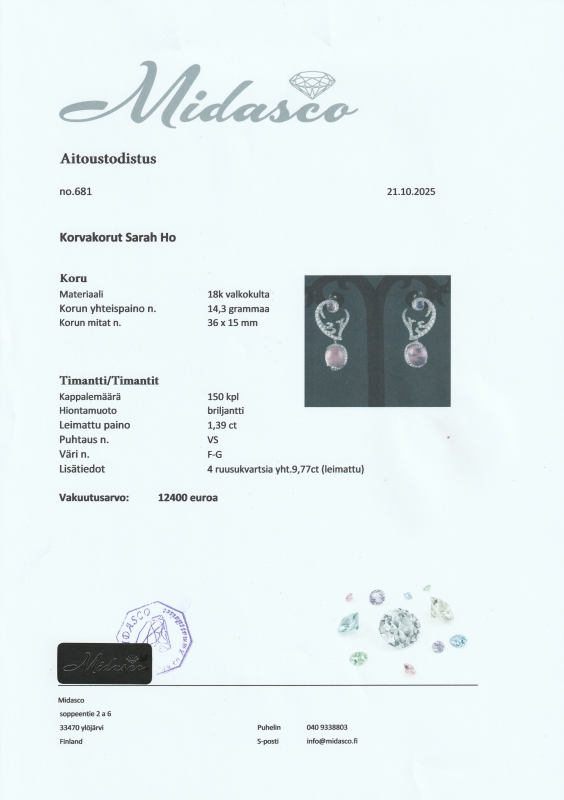 Mukana aitoustodistus sekä uusi korurasia. Bruttopaino 14,3g. Valmistaja kuuluisa suunnittelija Sarah Ho