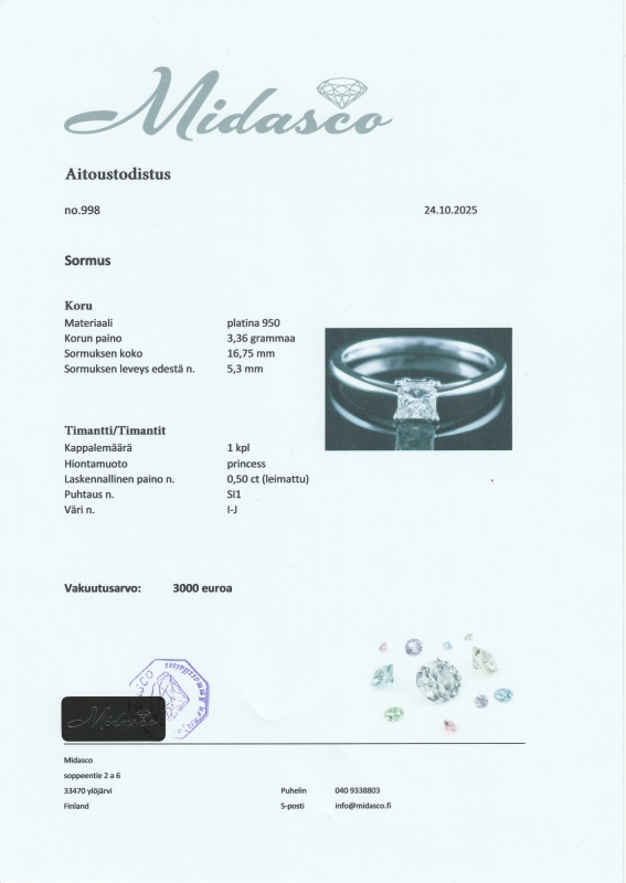 #1236 Platinasormus 0,50ct timantilla, 3,36g