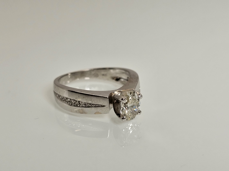 #1029 14k valkokultainen sormus timanteilla joista isoin 0,90ct + GIA -todistus, 5,41g