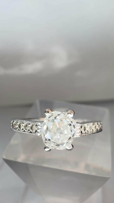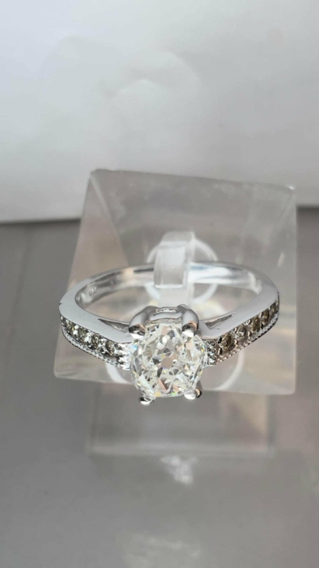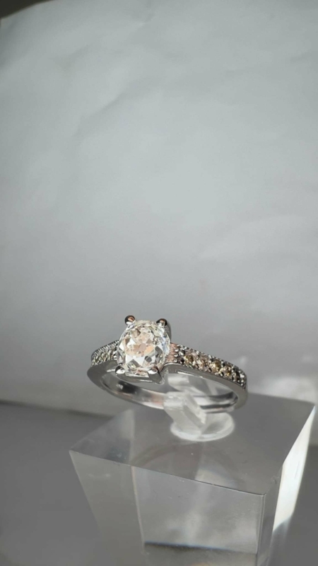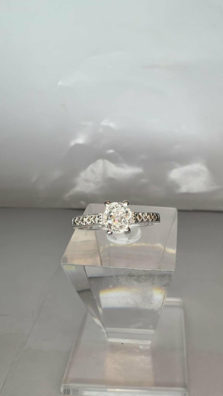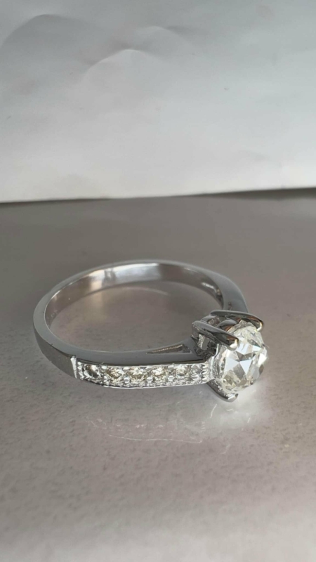 #1134 14k valkokultainen sormus jossa 1kpl 1,03ct timantti ja 10kpl 0,01ct timantteja, 2,87g