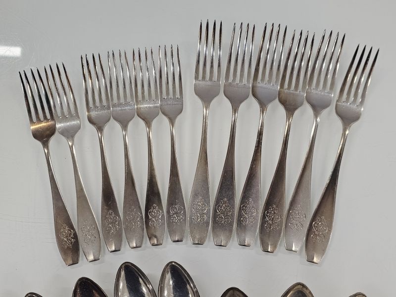 #1209 - Hopeinen aterinsarja: 6+6kpl haarukoita, 6+6kpl lusikoita ja 6+6kpl veitsiä
