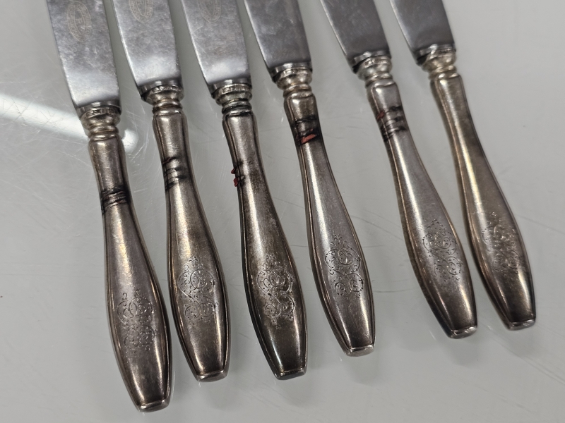 #1209 Hopeinen aterinsarja: 6+6kpl haarukoita, 6+6kpl lusikoita ja 6+6kpl veitsiä