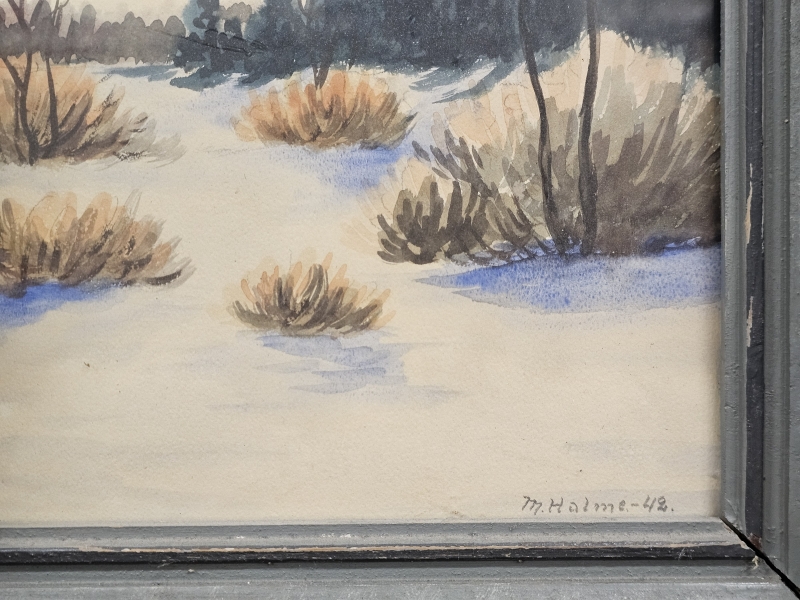 #2302 - 2kpl tauluja: M. Halme akvarelli & epäselvästi sign. öljyvärimaalaus