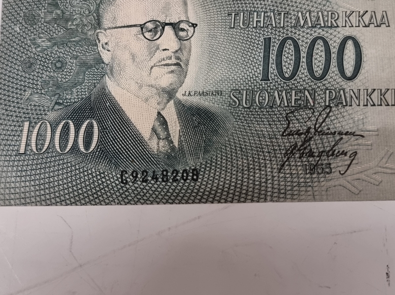 #1918 4kpl suomalaisia seteleitä: 500mk 1956, 1000mk 1955 ja 2kpl 100mk 1986