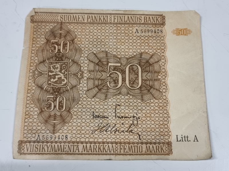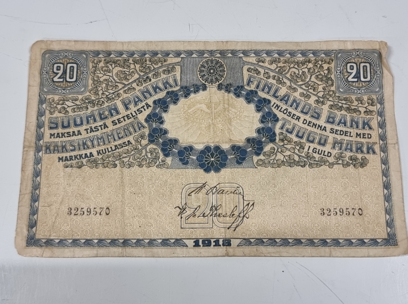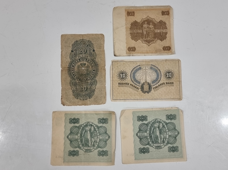 #2359 5kpl vanhoja suomalaisia seteleitä, mm. 20mk 1898 ja 1918