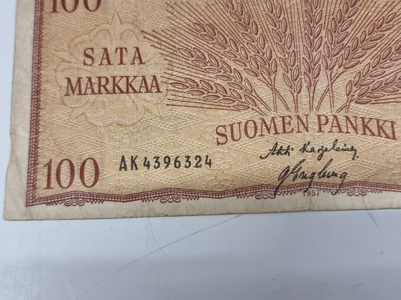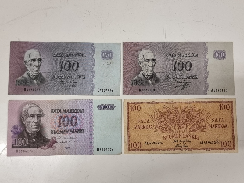 #1917 4kpl suomalaisia 100mk seteleitä. Mm. 2kpl 1963
