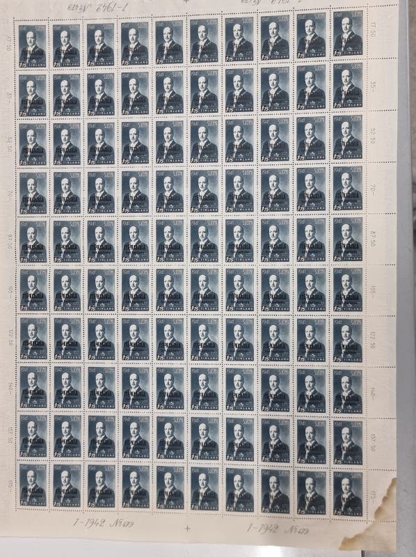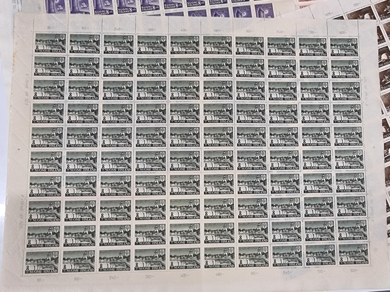 #1739 9 kpl postimerkkiarkkeja. Mm. Itä-Karjala sot. hallinto.