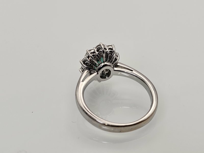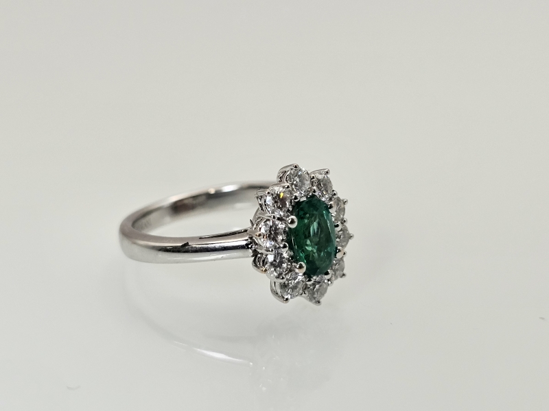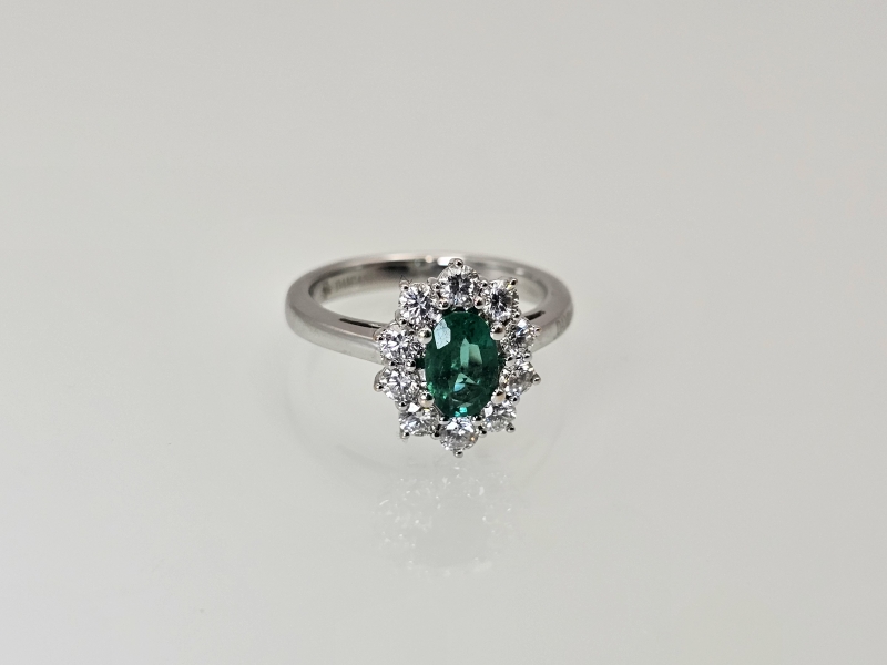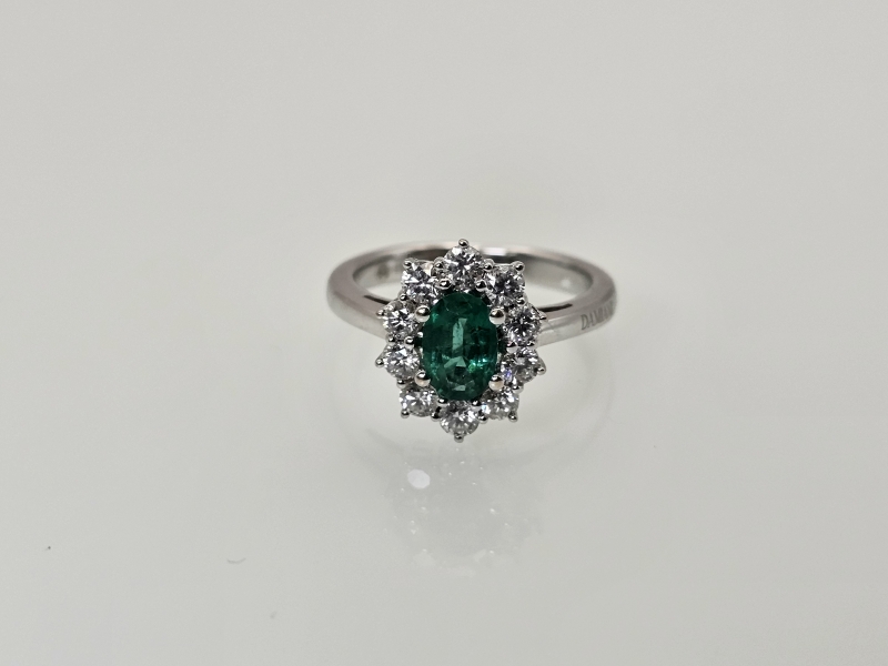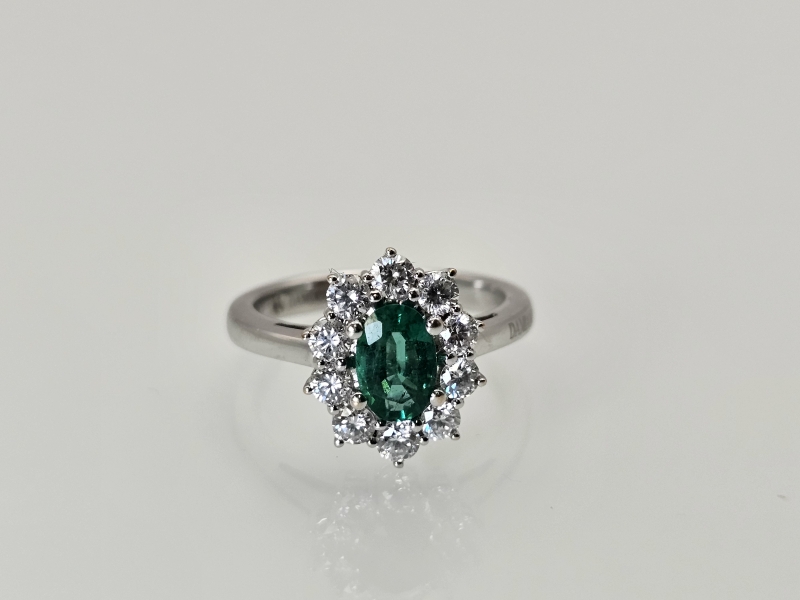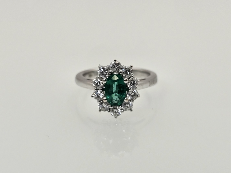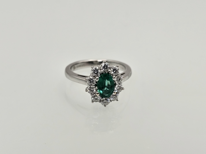 #1024 18k valkokultainen laadukas italialainen Damiani sormus n. 0,50ct smaragdilla ja timanteilla [yht. 0,63ct VS-SI1], 5,55g