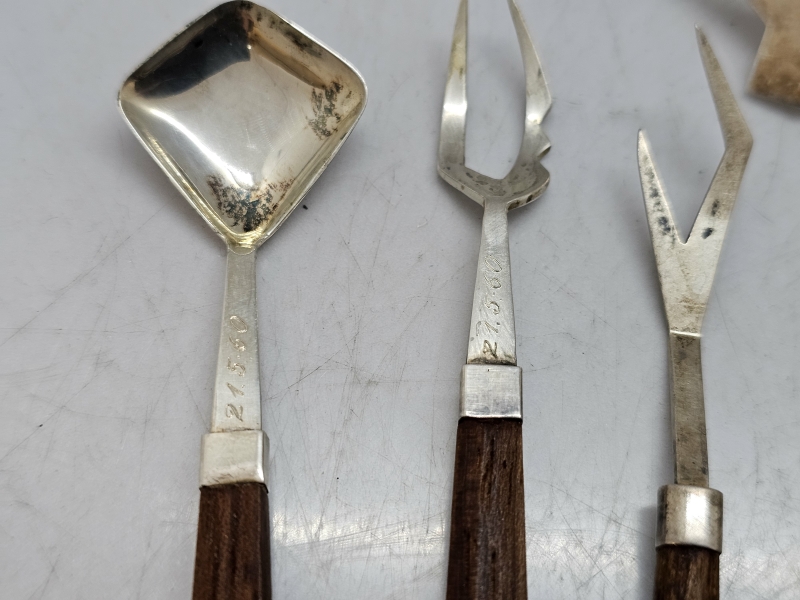 #1369 - Erä hopeisia design ottimia puukahvoilla