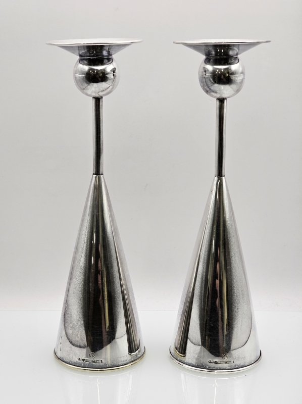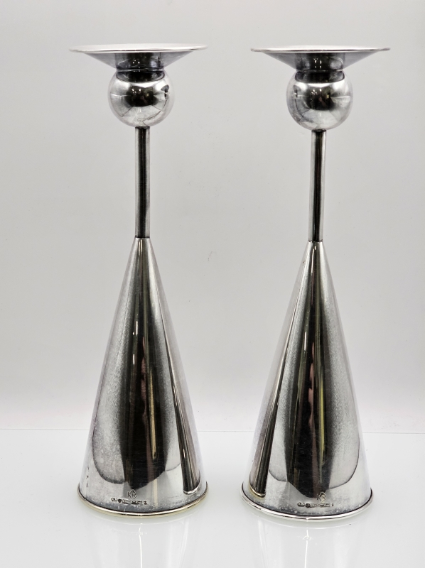 #1371 - 2kpl hopeisia Kaj Blomqvist kynttilänjalkoja