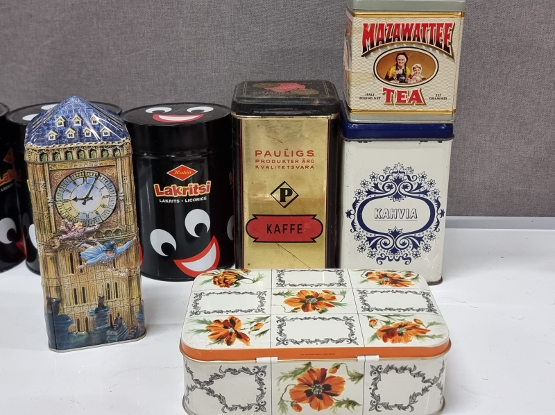 #2210 - Erä peltipurkkeja. Mm. Paulig, Halvan lakritsi