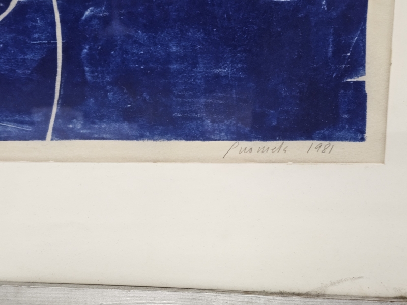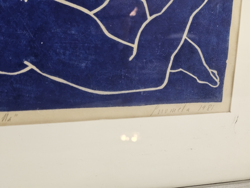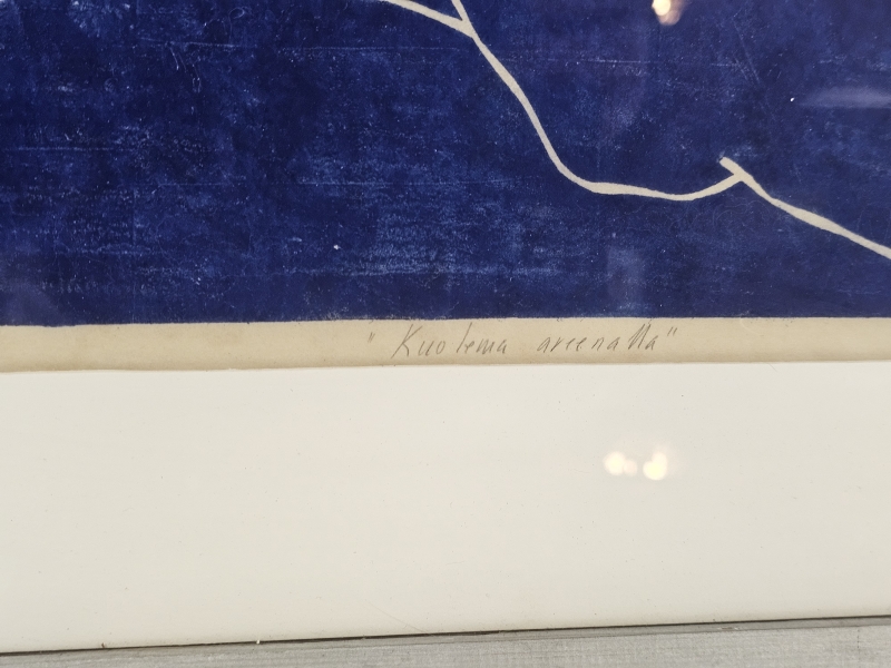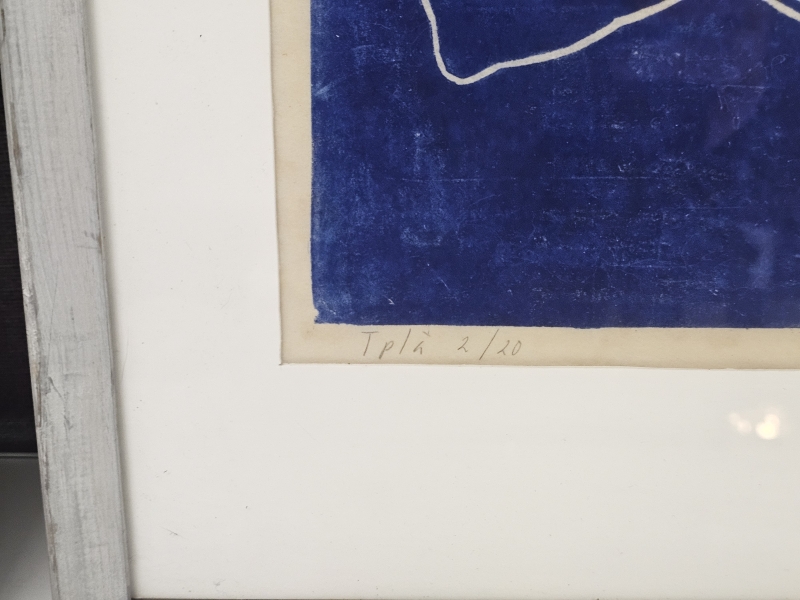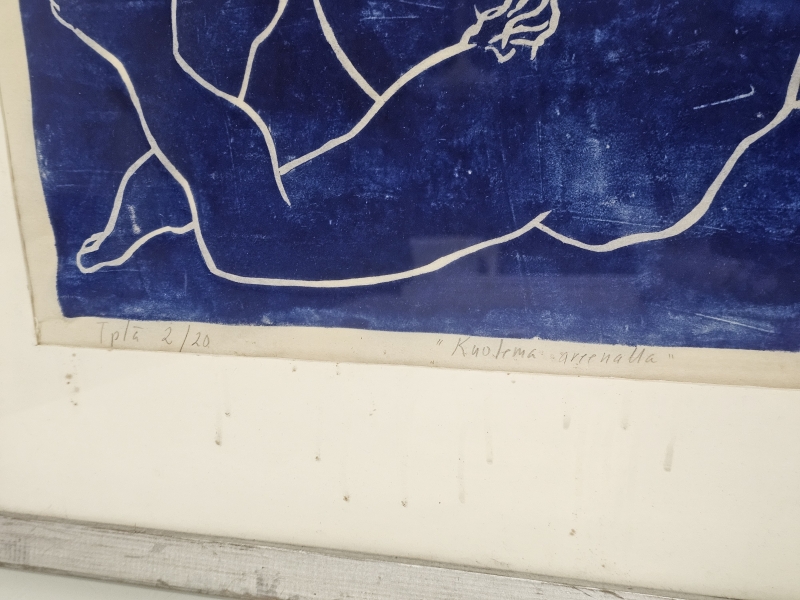 Kehyksineen 53cm x 68cm. Kehyksissä kulumaa
