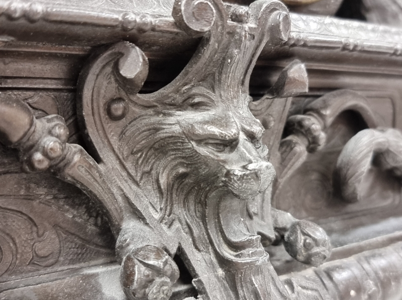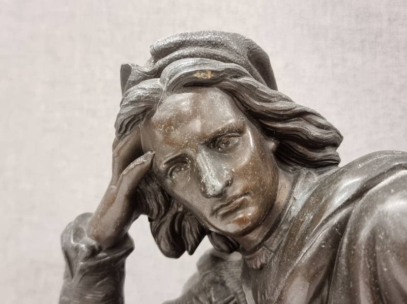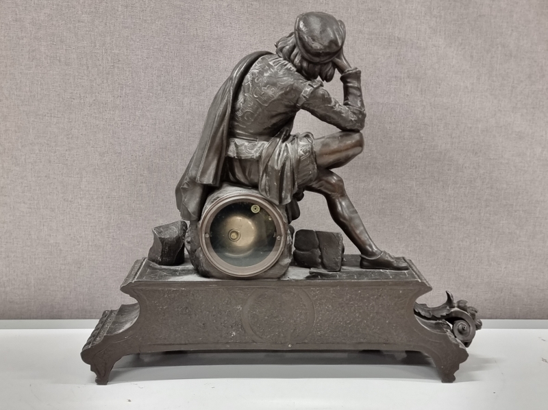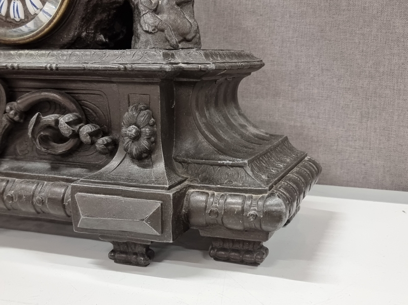 #1925 1800-luvun pöytäkello patsaalla ja emalinumeroilla