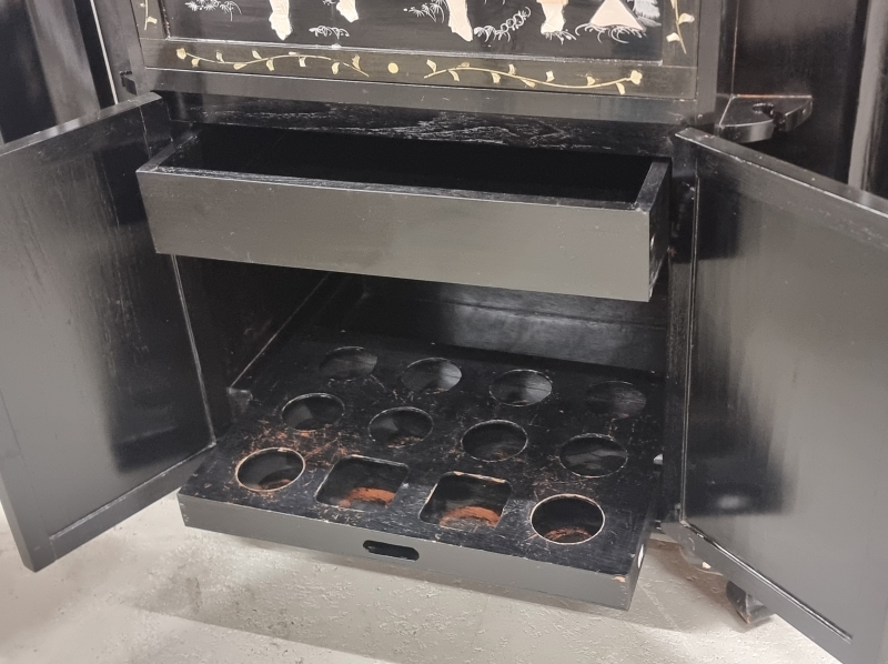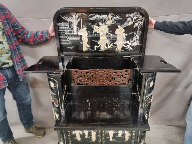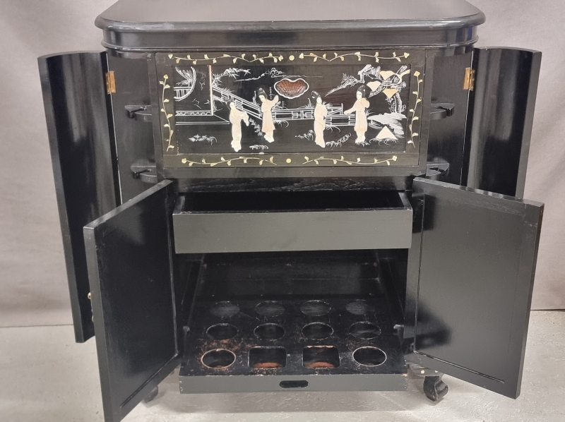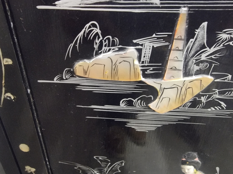 #1803 Itämainen baarikaappi runsailla, taidokkailla helmiäiskoristeilla