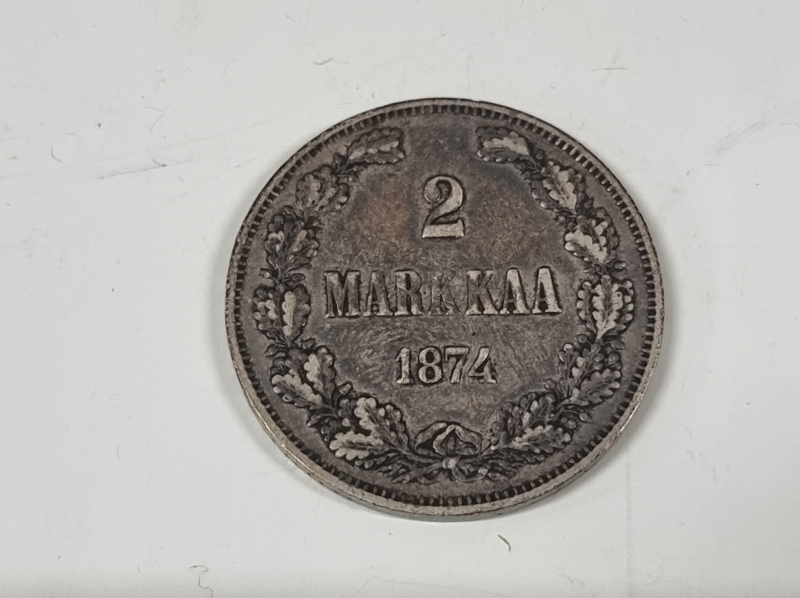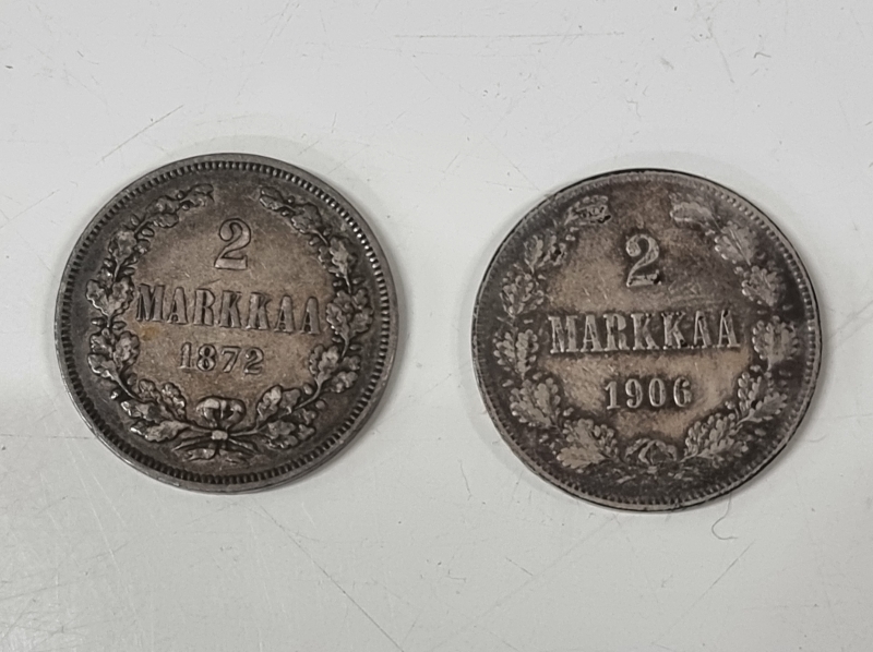 #1930 Erä suomalaisia kolikoita. Mm. 2mk 1874 ja 2mk 1872