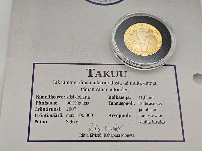 #1394 - Kultakolikko - Amerikkalaiset kultadollarit, Jamestown 400v, 8,36g