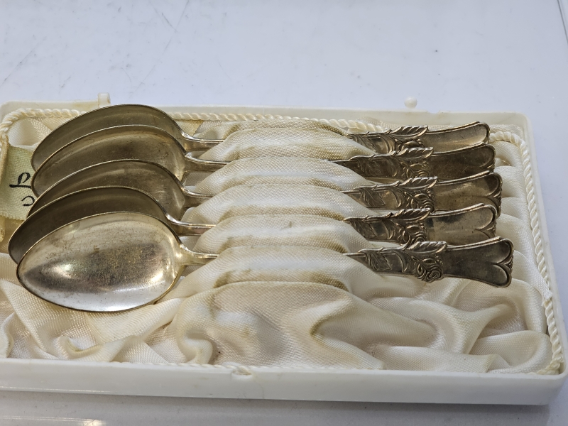 #1413 Hopeisia kahvilusikoita + 5kpl alpakkalusikoita