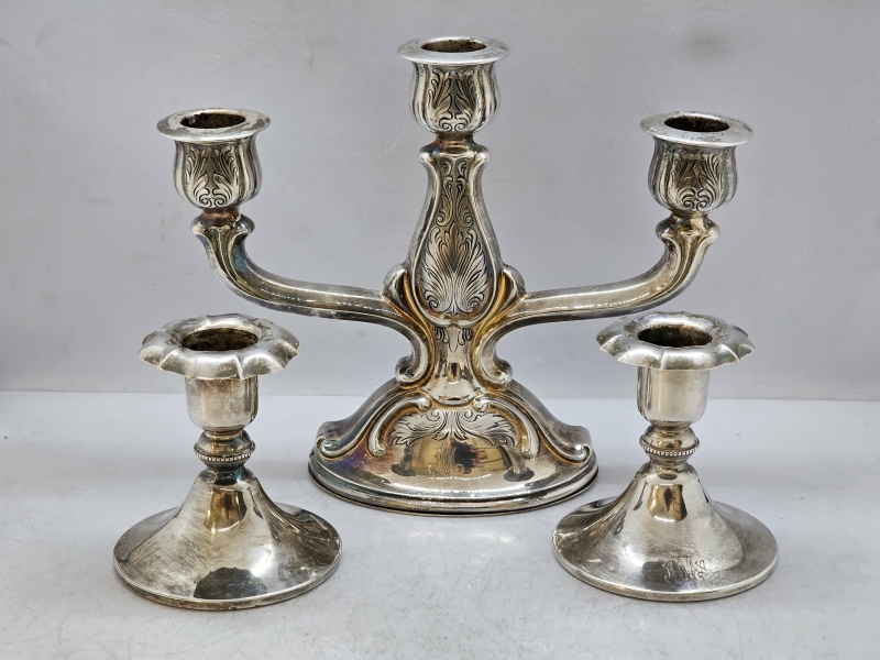 #1416 1+2kpl hopeisia kynttilänjalkoja