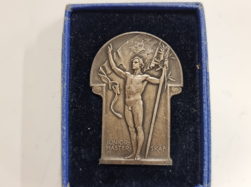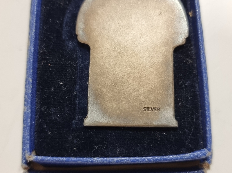 #2222 Vanha hopeamitali, tauluja, savukeaski ym.