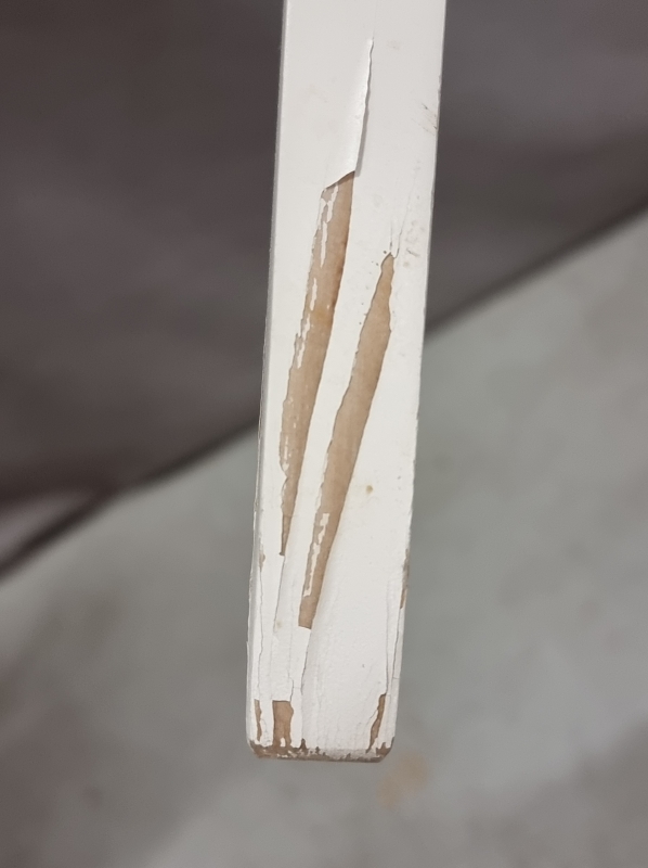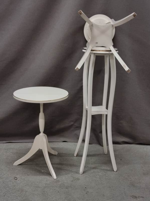 Toisen kukkapylvään pinnassa maali krakeloitunut. Pylväiden jaloissa maalit lohkeillut. Pylvään korkeus: 90cm