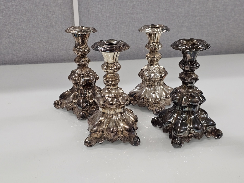 #1438 4kpl hopeisia Barokki -kynttilänjalkoja
