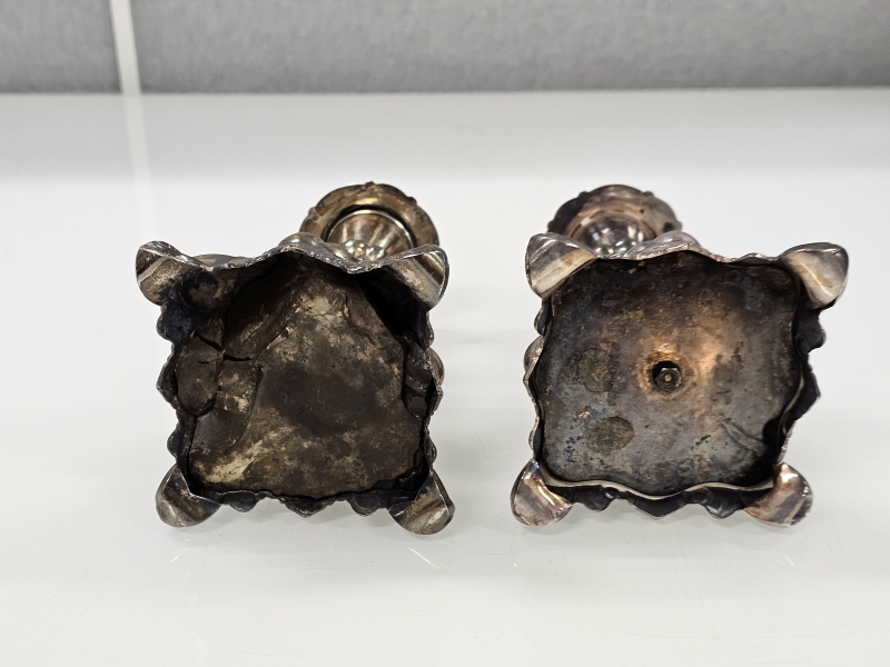 #1439 2kpl hopeisia Barokki -kynttilänjalkoja