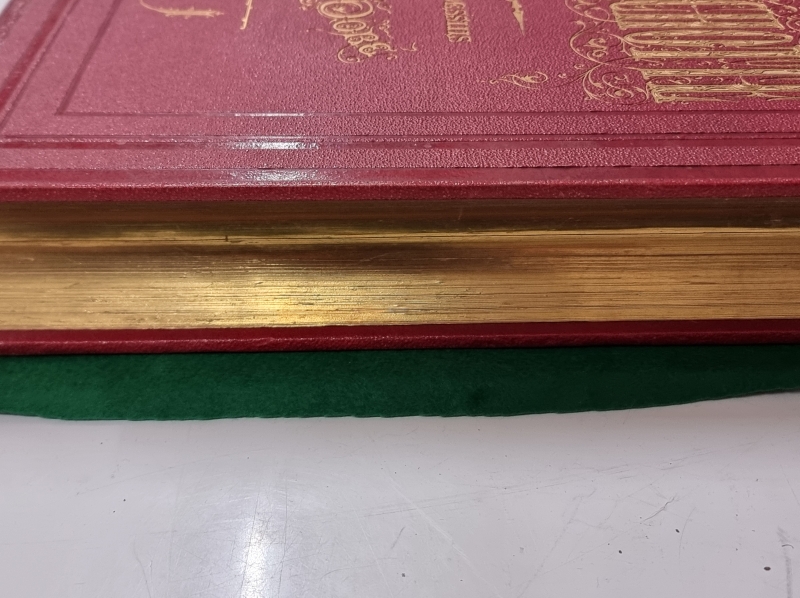Kullatut sivun reunat, mitat 33cm x 42,5cm. Pientä kulumaa.