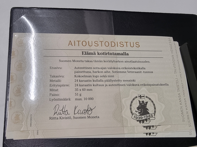 Mukana aitoustodistukset, alkuperäislaatikoissa