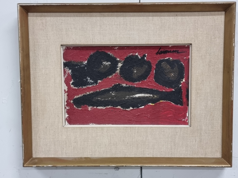 #1810 - Öljyvärimaalaus, Ahti Lavonen, "Kala ja hedelmiä" 1958