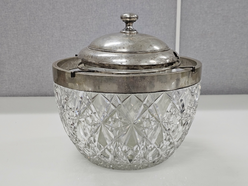 #1477 Poikkeuksellisen näyttävä isokokoinen kristalli/hopea jäähdytysastia shampanjalle / kaviaarille / jäätelölle, valmistaja Gebrüder Friedländer, Berliini 1800-1900-l. vaihde