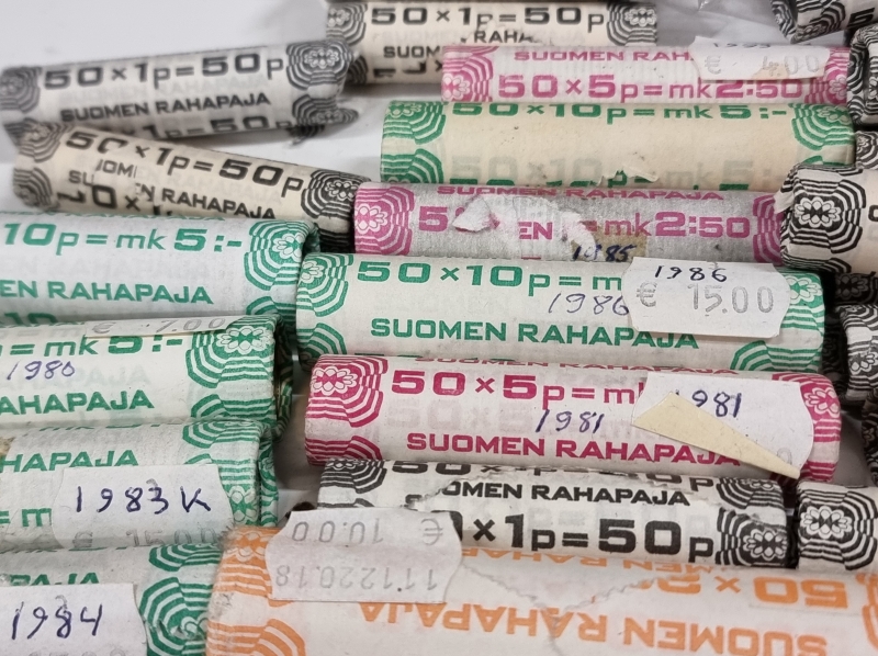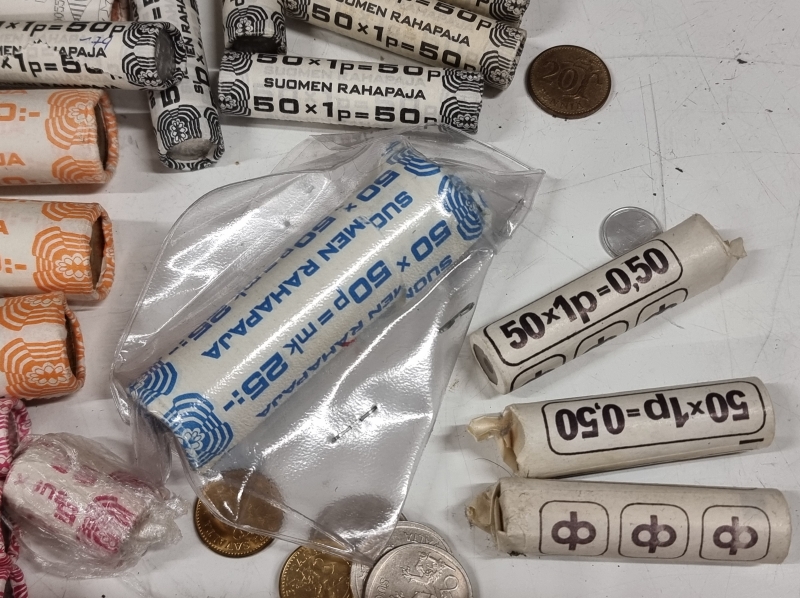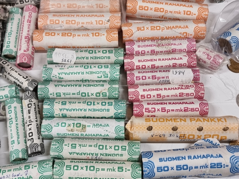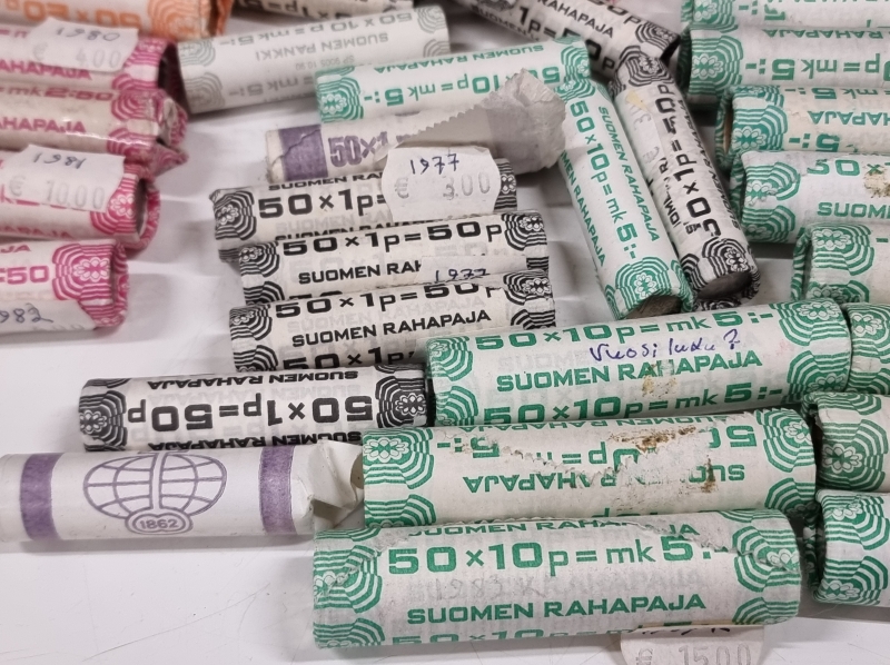 #1950 Erä markka -ajan kolikkopuntteja ja kolikoita.