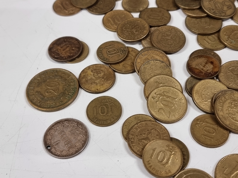 #2408 Hyvä erä viinamittoja, kolikoita ym.