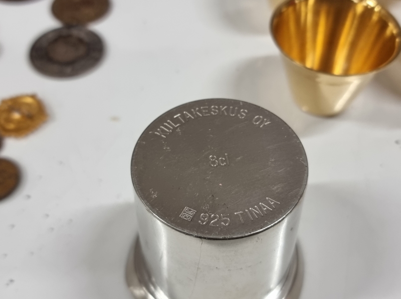 #2408 - Hyvä erä viinamittoja, kolikoita ym.