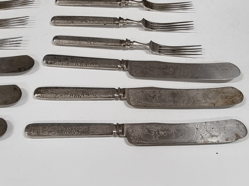 #2415 - Vanhat hopeoidut aterimet laatikossa.